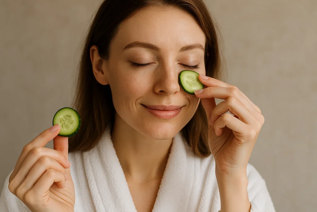 استفاده از ژل تازه آلوئه ورا میتواند به آبرسانی پوست دور چشم و کاهش التهاب کمک کند. - خیار: حلقههای خیار یا کمپرس آب خیار، خنککننده و تسکیندهنده هستند و به کاهش پف دور چشم و روشن شدن پوست کمک میکنند.