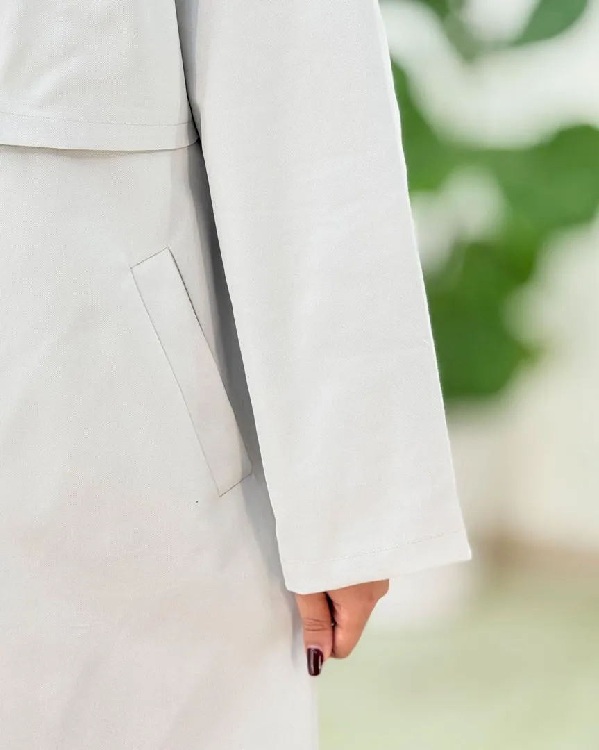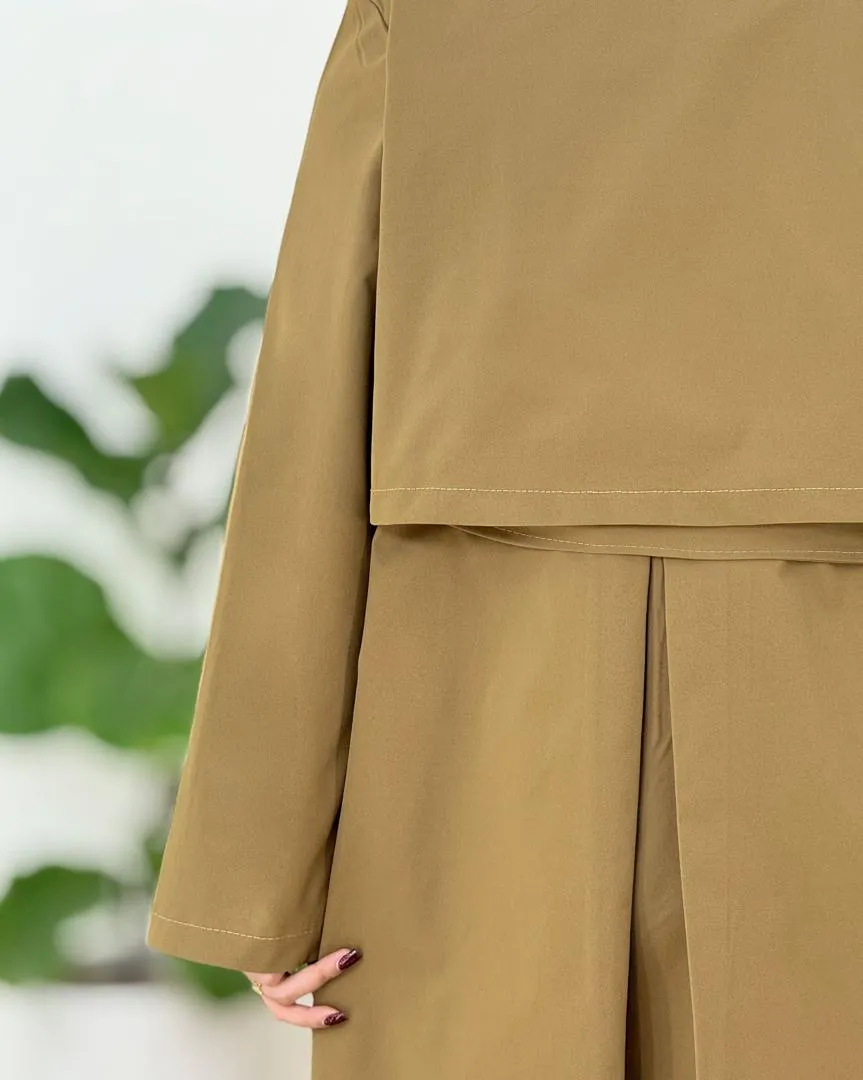 یقه انگلیسی این بارانی ظاهری کلاسیک و مرتب به استایل میدهد و جلوهای رسمی و جذاب ایجاد میکند.