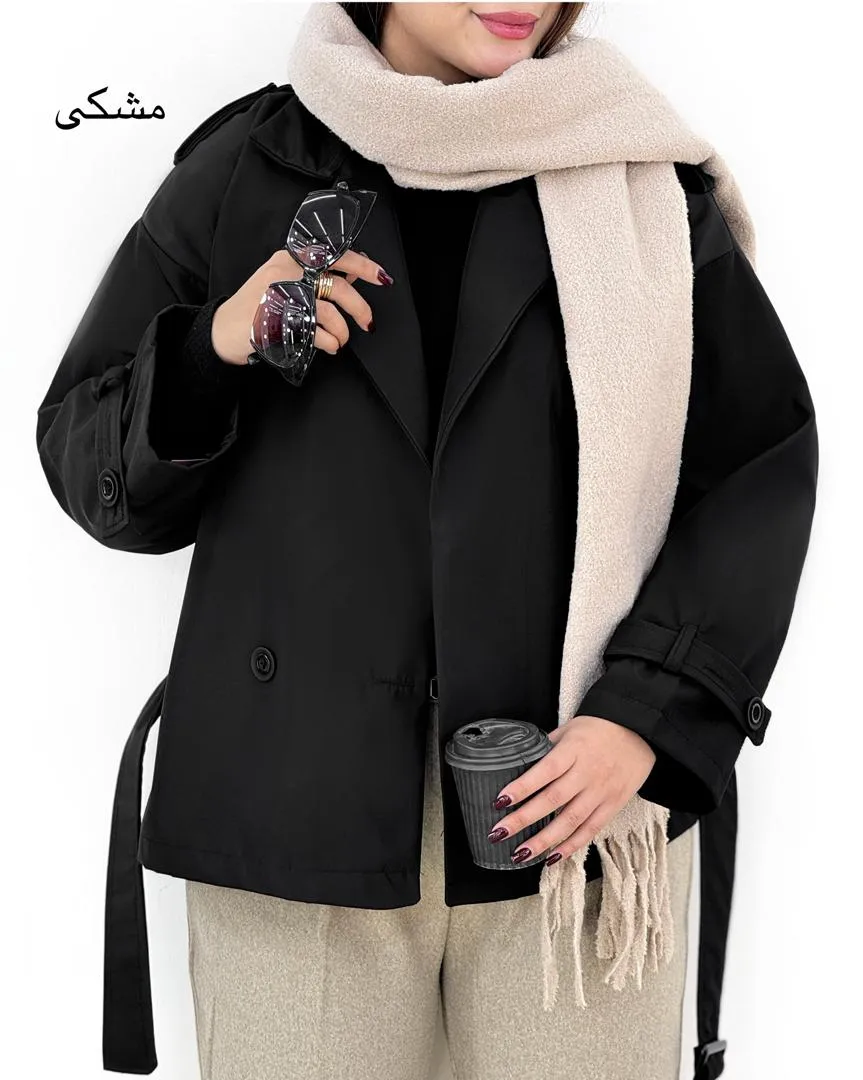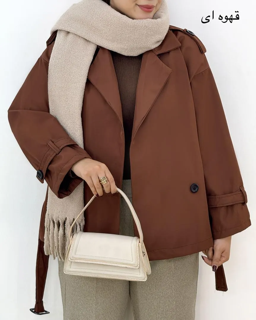 بارانی سانتانا کمربند دار با یقه انگلیسی، یک انتخاب شیک و کلاسیک برای استایل روزمره و پاییزی شماست 🧥