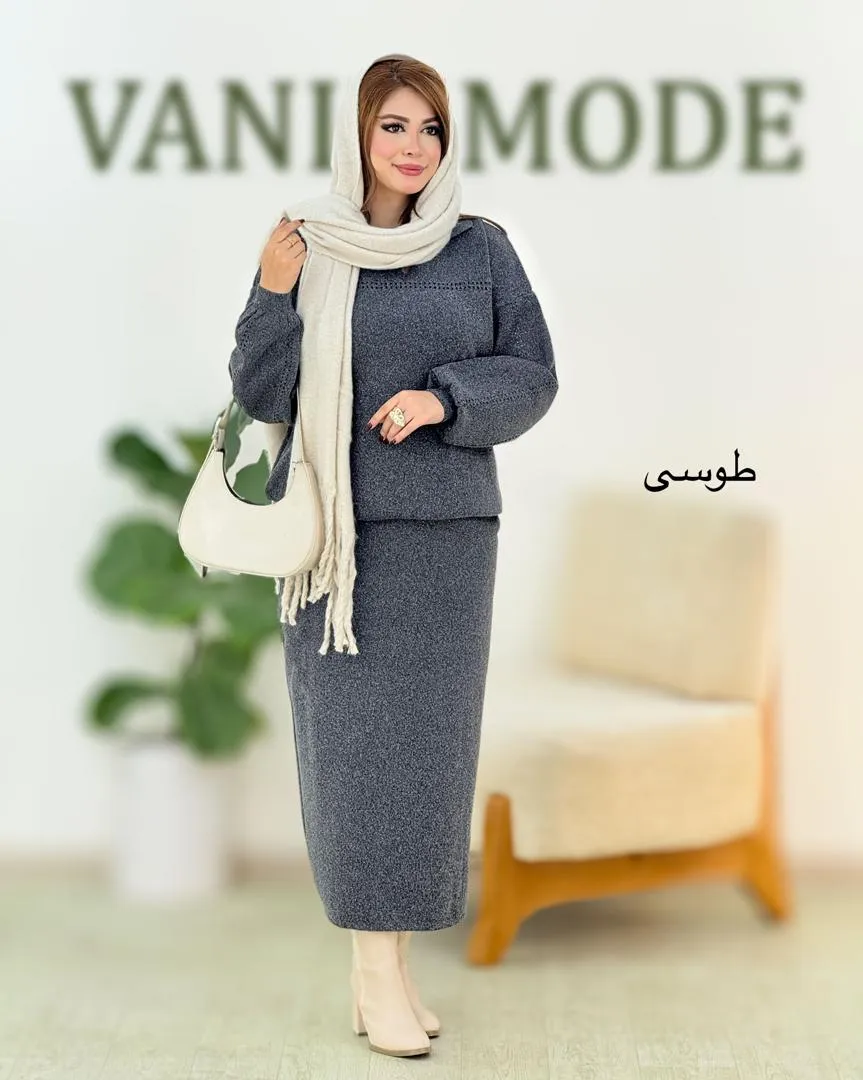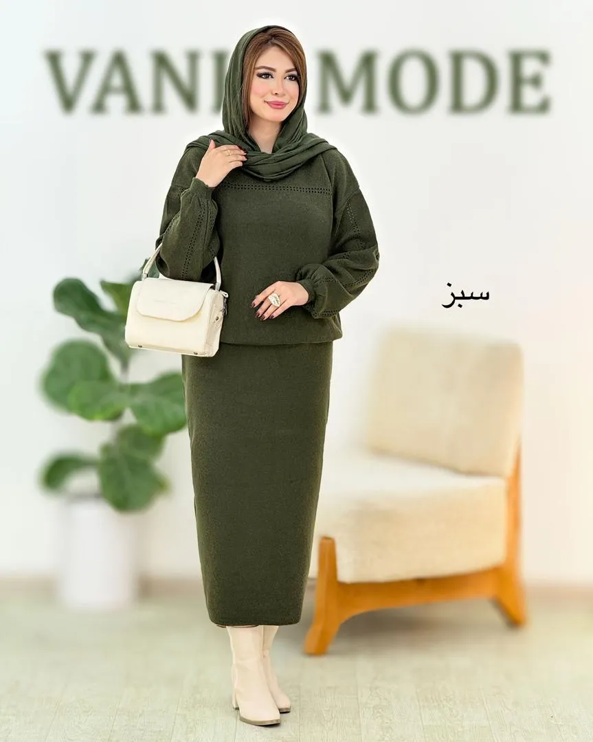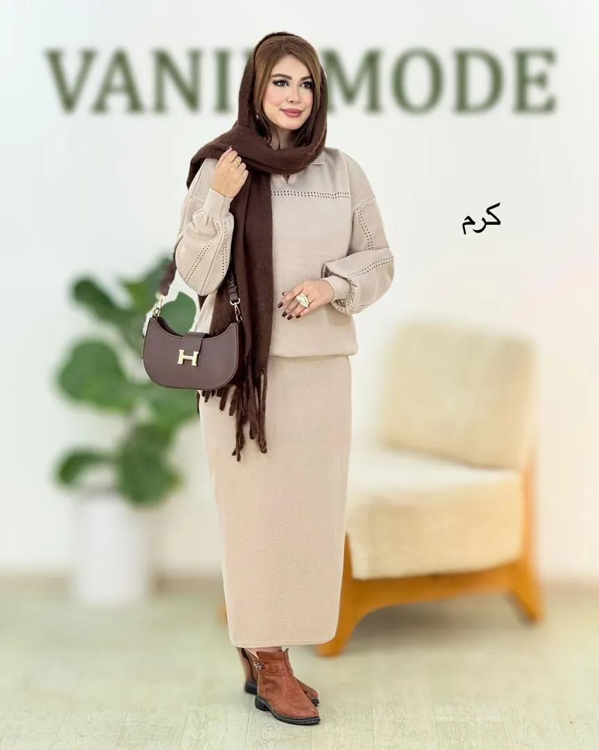 ست بلوز دامن یقه هفت با طراحی شیک و پاییزی 👗