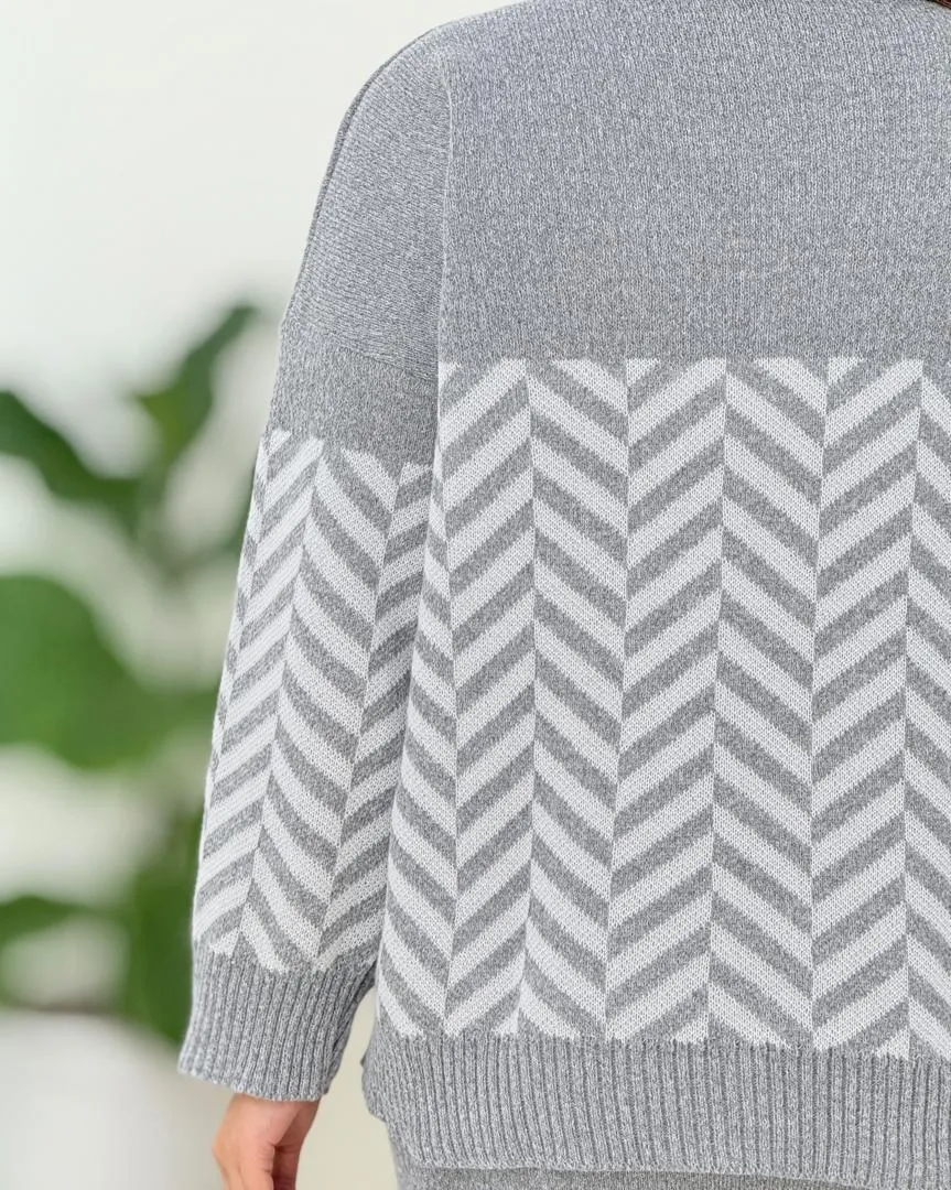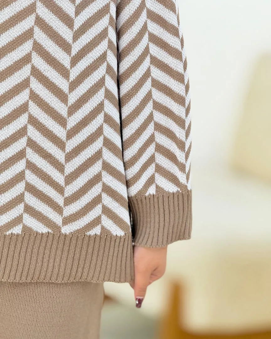 ست بلوز شلوار بافت طرح هاشور، یک انتخاب گرم و راحت برای استایل روزمره و پاییزی شماست 🍂