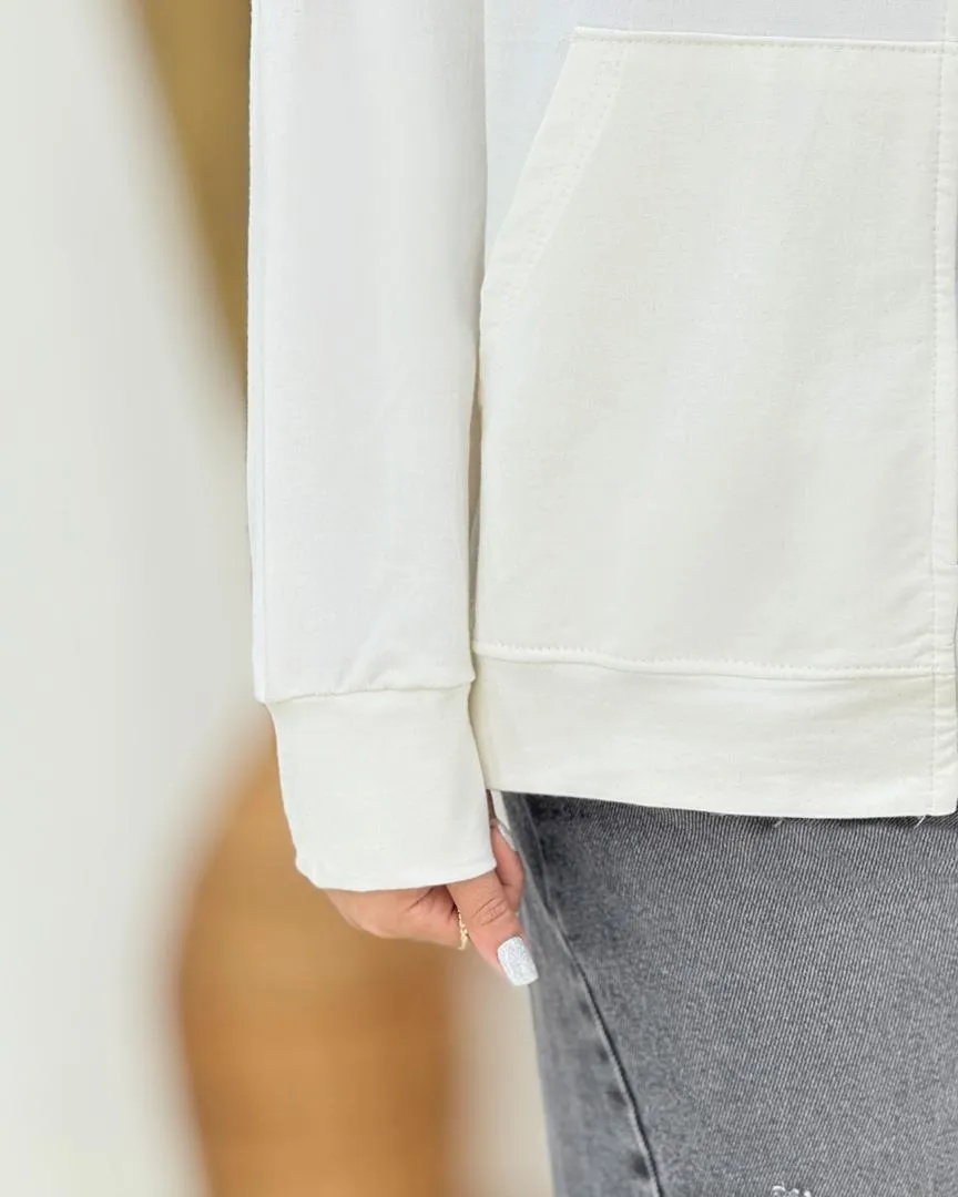 سویشرت کلاه دار زنانه با طراحی ساده و اسپرت، انتخابی عالی برای روزهای خنک است.
