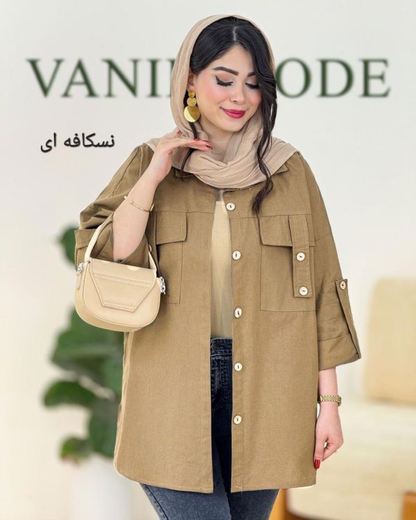 جلوش دکمهکاری شده که باز و بسته کردنش رو راحت میکنه و در عین حال فرم لباس رو شیکتر نشون میده ✨