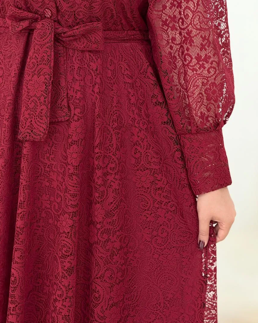 پیراهن دانتل آستین مچ دار زنانه با طراحی شیک و پاییزی 👗