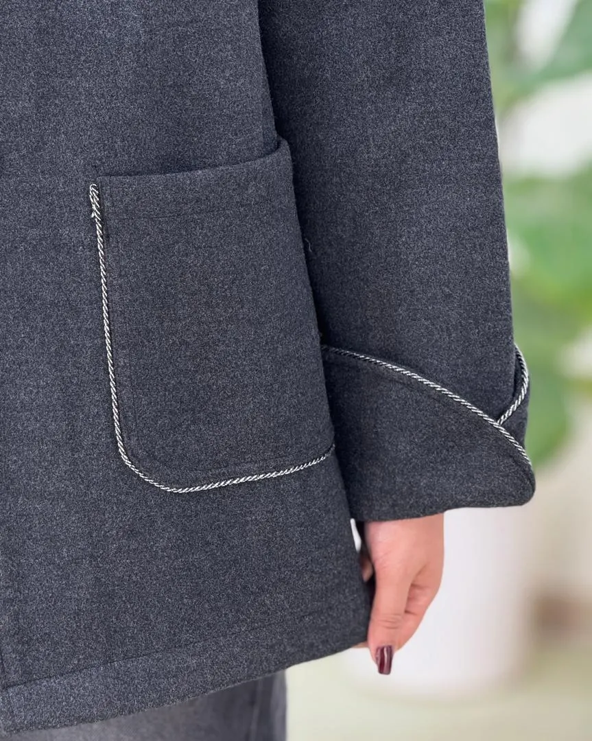 دور تا دور کت نواردوزی شده و سرشانه افتاده است که جلوهای مدرن و متفاوت به استایل شما میبخشد 👗