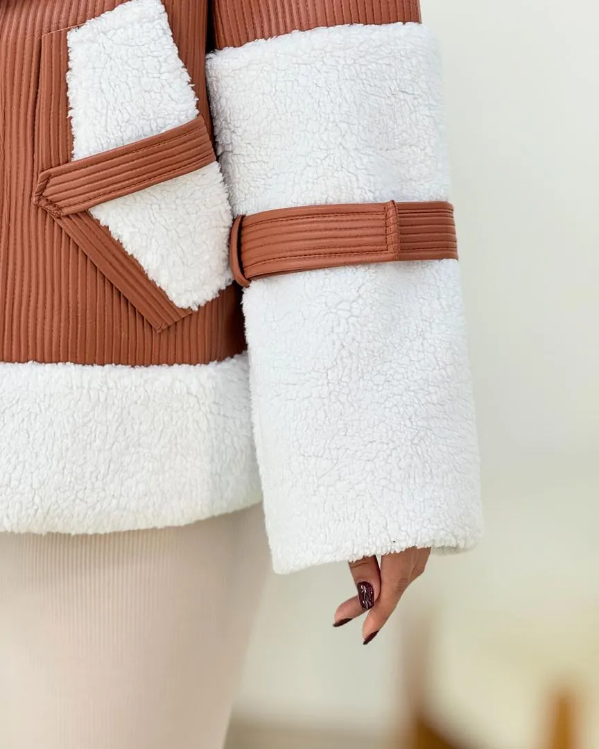 کت چرم کرکره ای آستین تدی با طراحی خاص و جذاب 👗