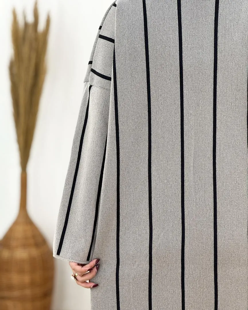 کفتان بافت بلند یقه کشباف، انتخابی خاص و شیک برای روزهای سرد سال است.